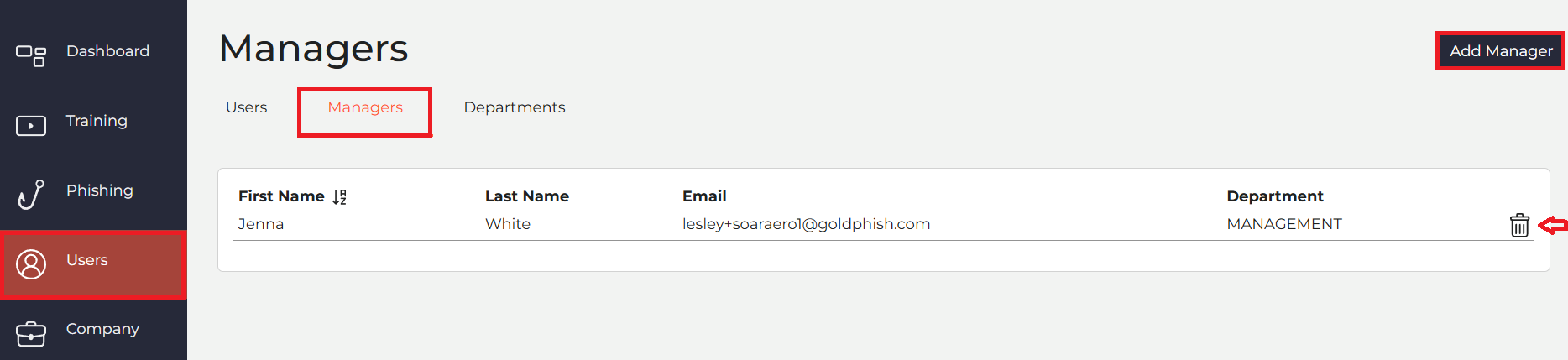 Note: To remove a manager? Click the 🗑️ (bin) icon next to their name.