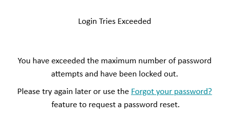 PROBLEM: You've exceeded the maximum number of login attempts and have been temporarily locked out.