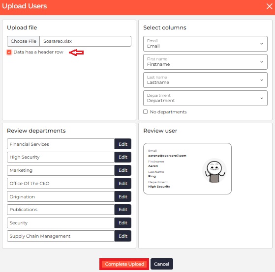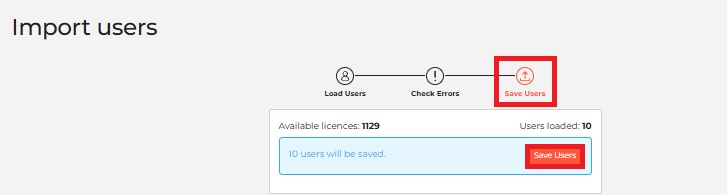 - Click Save Users to finalise the upload.