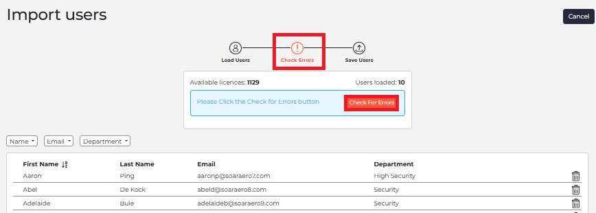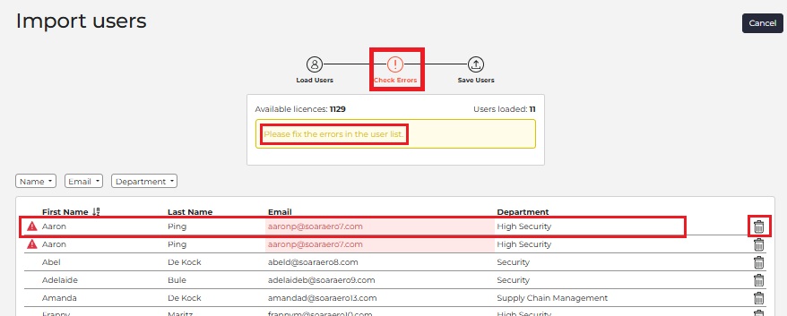 - Once all errors are resolved, click Save Users.
