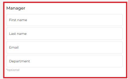 - Enter the manager’s name, last name and email address.
