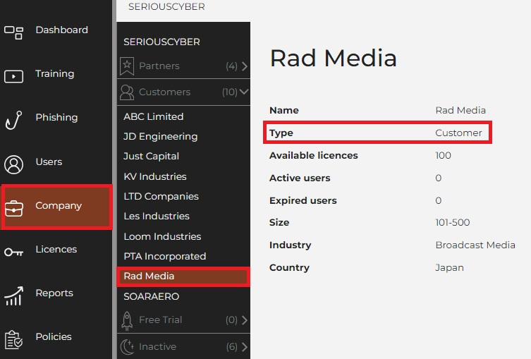 Your new Customer Company will now appear under the Customer section in your Partner multi-tenant view.