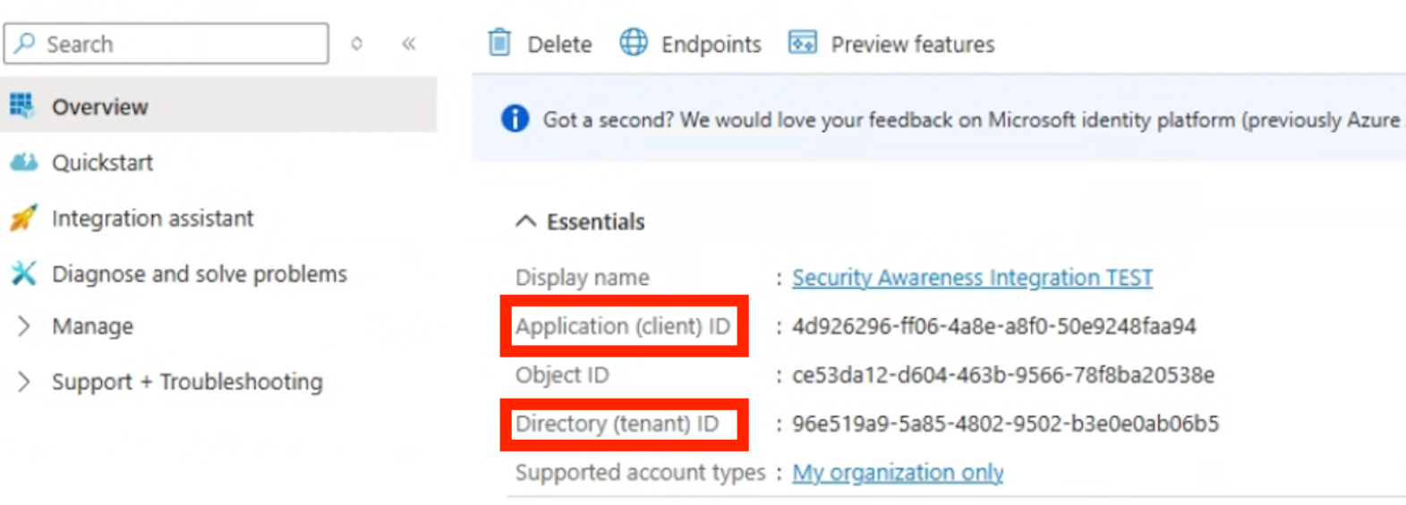 First, you need to create a valid Microsoft Graph API application — you will enter these credentials into the Security Awareness Platform in Step 2.